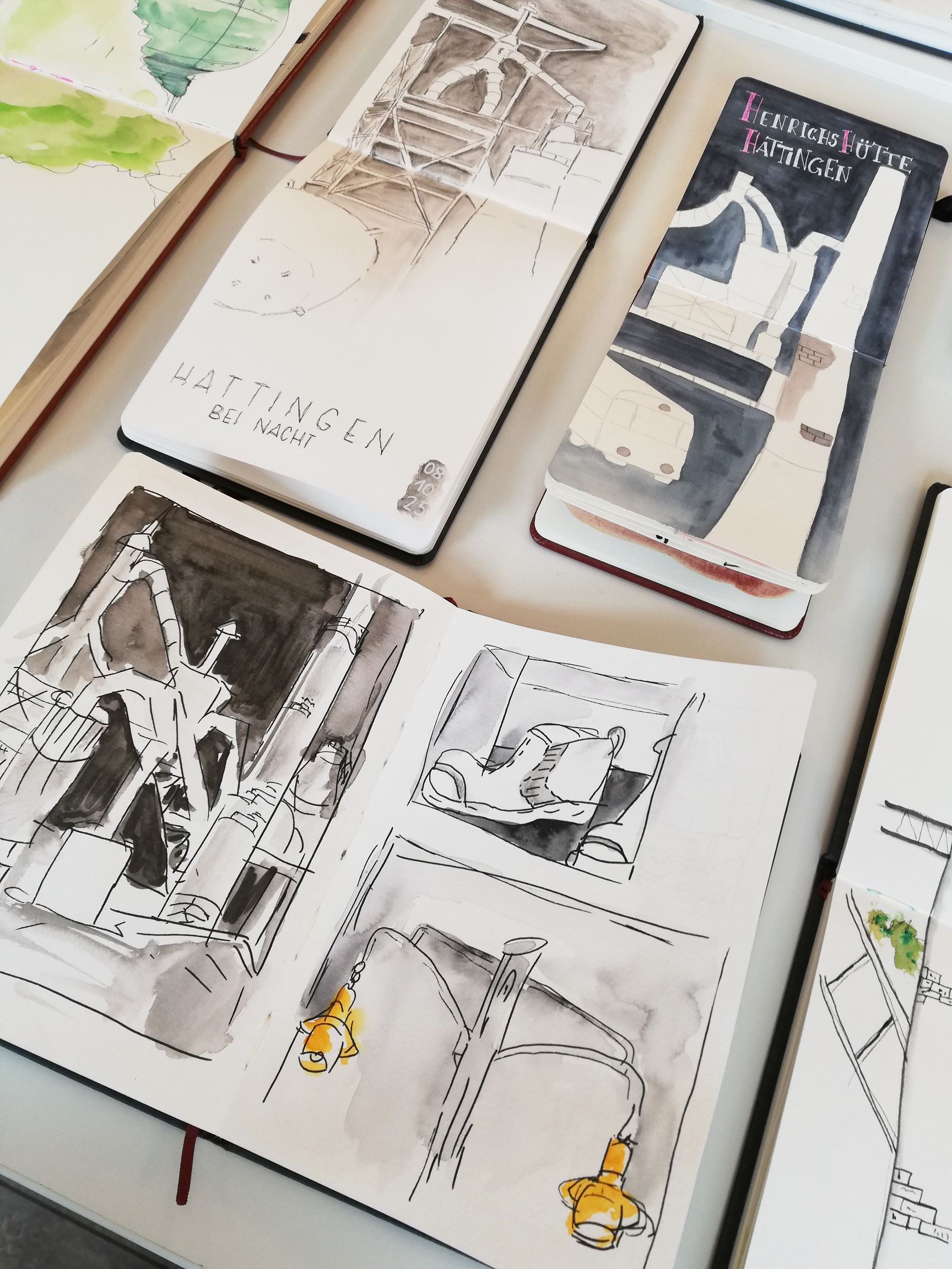 Mit dem Skizzenbuch durch Hattigen – von Fachwerk bis Stahlhütte. Hattingen liegt im südlichen Ruhrgebiet. Ein malerischer Ort, ideal für Zeichenexkursionen zwischen verwinkelten Altstadtgassen und Geschichten aus Eisen und Stahl wie dem Industriedenkmal Henrichshütte.